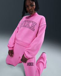 Made from midweight brushed fleece, this oversized sweatshirt has a soft and structured feel. Contrast stitching and a ribbed mock-neck collar give you a spin on a classic style. Product Details - Body: 80% cotton/20% polyester. Rib: 96% cotton/4% spandex - Ribbed cuffs, collar and hem - Double outline embroidered Nike - Oversized fit - Machine wash - Imported - Shown: Playful Pink - Style: IM7490-675 SIZE & FIT Model is wearing size S and is 5′7″170cm Oversized fit: exaggerated and spacious