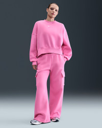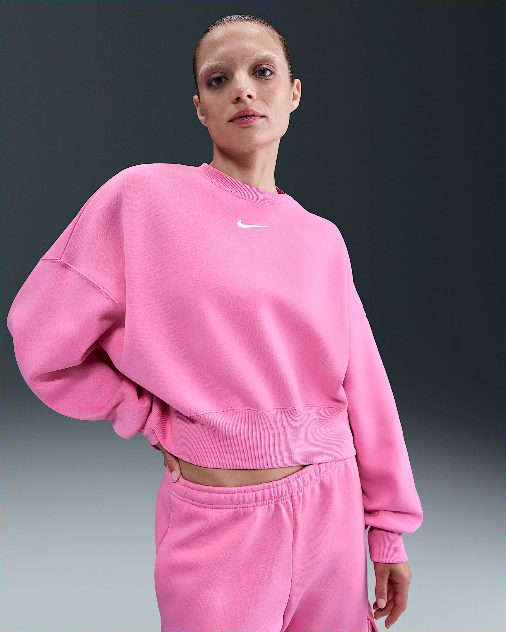 Grounded in style, comfort and versatility, meet our take on luxury loungewear. Our roomiest fit paired with exaggerated details (like the oversized pocket and taller ribbing) ensures this sweatshirt is anything but basic. All that's left to decide is whether to style it with the matching shorts or other pieces from your wardrobe. Benefits - Our midweight brushed fleece feels extra soft on the inside and smooth on the outside, helping you stay cozy while keeping its structured shape. - Dropped shoulder seams and roomy sleeves provide a relaxed, spacious feel. Product Details - Elongated ribbing - Embroidered Swoosh logo - 80% cotton/20% polyester - Machine wash - Imported - Shown: Playful Pink/Sail - Style: DQ5761-676 SIZE & FIT Model is wearing size S and is 5′10″178cm Oversized fit: exaggerated and spacious Fits large; we recommend ordering a size down