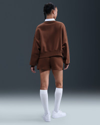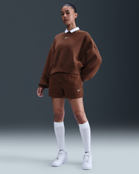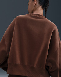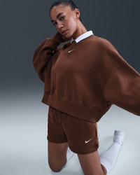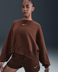 Grounded in style, comfort and versatility, meet our take on luxury loungewear. Our roomiest fit paired with exaggerated details (like the oversized pocket and taller ribbing) ensures this sweatshirt is anything but basic. All that's left to decide is whether to style it with the matching shorts or other pieces from your wardrobe. Benefits - Our midweight brushed fleece feels extra soft on the inside and smooth on the outside, helping you stay cozy while keeping its structured shape. - Dropped shoulder seams and roomy sleeves provide a relaxed, spacious feel. Product Details - Elongated ribbing - Embroidered Swoosh logo - 80% cotton/20% polyester - Machine wash - Imported - Shown: Fauna Brown/Sail - Style: DQ5761-265 SIZE & FIT Model is wearing size S and is 5′9″175cm Oversized fit: exaggerated and spacious Fits large; we recommend ordering a size down