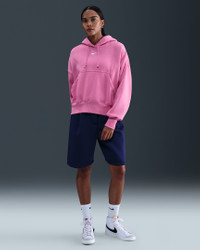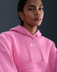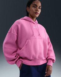 Grounded in style, comfort and versatility, meet our take on luxury loungewear. Our roomiest fit paired with exaggerated details (like the oversized pocket and taller ribbing) ensures this hoodie is anything but basic. All that's left to decide is whether to style it with the matching sweats or other pieces from your wardrobe. Benefits - Our midweight brushed fleece feels extra soft on the inside and smooth on the outside, helping you stay cozy while keeping its structured shape. - Dropped shoulder seams and roomy sleeves provide a relaxed, spacious feel. Product Details - Elongated ribbing - Drawcord hood - Front pocket - Body: 80% Cotton/20% Polyester. Hood lining: 100% Cotton. - Machine wash - Imported - Shown: Playful Pink/Sail - Style: DQ5858-676 SIZE & FIT Oversized fit: exaggerated and spacious Fits large; we recommend ordering a size down