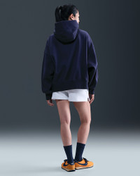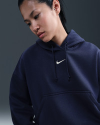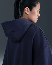 Grounded in style, comfort and versatility, meet our take on luxury loungewear. Our roomiest fit paired with exaggerated details (like the oversized pocket and taller ribbing) ensures this hoodie is anything but basic. All that's left to decide is whether to style it with the matching sweats or other pieces from your wardrobe. Benefits - Our midweight brushed fleece feels extra soft on the inside and smooth on the outside, helping you stay cozy while keeping its structured shape. - Dropped shoulder seams and roomy sleeves provide a relaxed, spacious feel. Product Details - Elongated ribbing - Drawcord hood - Front pocket - Body: 80% Cotton/20% Polyester. Hood lining: 100% Cotton. - Machine wash - Imported - Shown: Midnight Navy/Sail - Style: DQ5858-410 SIZE & FIT Model is wearing size S and is 5′10″178cm Oversized fit: exaggerated and spacious Fits large; we recommend ordering a size down