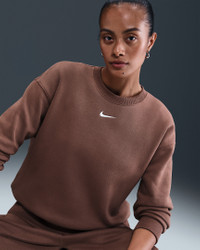 This cozy fleece sweatshirt feels extra soft on the inside and smooth on the outside. Dropped shoulders and extra-wide ribbing enhance the oversized look. Product Details - Body: 80% cotton/20% polyester. Rib: 97% cotton/3% spandex. - Embroidered Swoosh logo at center chest - Machine wash - Imported - Shown: Fauna Brown/Sail - Style: FZ4270-265 SIZE & FIT Model is wearing size S and is 5′8″173cm Oversized fit: exaggerated and spacious