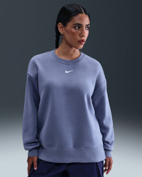 This cozy fleece sweatshirt feels extra soft on the inside and smooth on the outside. Dropped shoulders and extra-wide ribbing enhance the oversized look. Product Details - Body: 80% cotton/20% polyester. Rib: 97% cotton/3% spandex. - Embroidered Swoosh logo at center chest - Machine wash - Imported - Shown: World Indigo/Sail - Style: FZ4270-499 SIZE & FIT Oversized fit: exaggerated and spacious