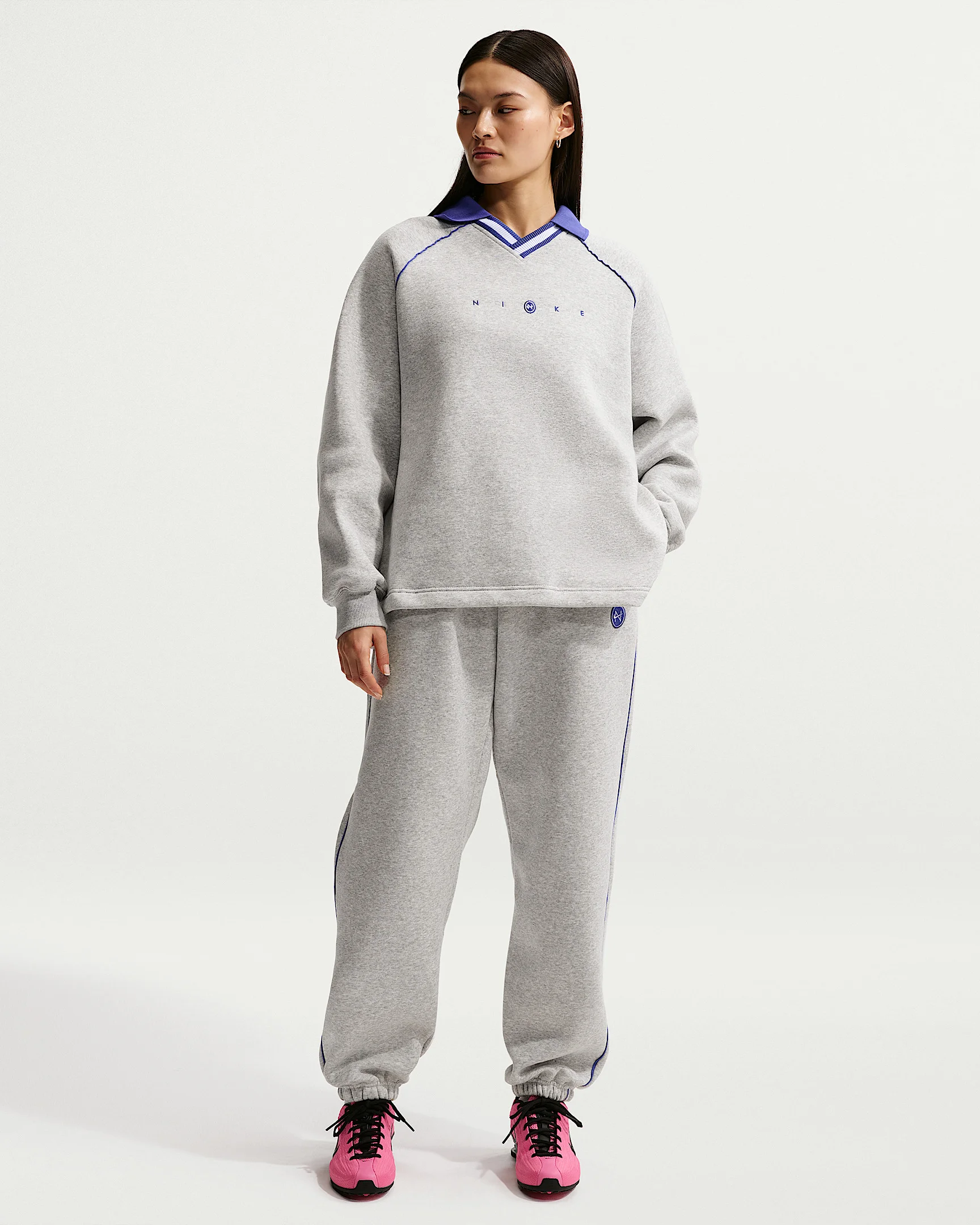 These pants are crafted with midweight brushed fleece that's extra soft on the inside and smooth on the outside. An extra roomy fit, cinched ankles and piping details make a look that's perfectly slouchy yet put-together. Product Details - Embroidered graphic - Back patch pocket - Hand pockets - Tall elastic waistband with drawcord - 80% cotton/20% polyester - Machine wash - Imported - Shown: Pure Platinum/Heather/Lapis - Style: IF0254-043 SIZE & FIT Model is wearing size S and is 5′7″170cm Oversized fit: exaggerated and spacious Fl length: hits below ankle