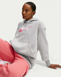 This hoodie is crafted with midweight brushed fleece that's extra soft on the inside and smooth on the outside. It has dropped shoulders, an extra roomy fit and is elevated with a textured logo for a look that's perfectly slouchy yet put-together. Product Details - Ribbed hem and cuffs - Body: 80% cotton/20% polyester. Hood lining: 100% cotton. - Machine wash - Imported - Shown: Pure Platinum/Heather/Sea Coral - Style: IM9643-043 SIZE & FIT Model is wearing size S and is 5′7″170cm Oversized fit: exaggerated and spacious