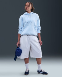 Grounded in style, comfort and versatility, meet our take on luxury loungewear. This classic hoodie helps you stay cozy all day long, thanks to midweight fleece that feels soft yet structured. Plus, exaggerated details (like taller ribbing and oversized fit) give you a trend-right look. Benefits - Our midweight brushed fleece feels extra soft on the inside and smooth on the outside, helping you stay cozy while keeping its structured shape. - Dropped shoulders and roomy sleeves provide a relaxed, oversized feel. Product Details - Drawcord hood - Elongated ribbing - Oversized pocket - Embroidered Swoosh logo - Body: 80% cotton/20% polyester. Hood lining: 100% cotton. - Machine wash - Imported - Shown: Celestine Blue/Sail - Style: DQ5860-442 SIZE & FIT Model is wearing size S and is 5′9″175cm Oversized fit: exaggerated and spacious Fits large; we recommend ordering a size down