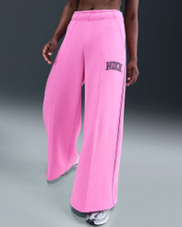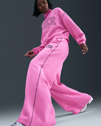 Made from midweight brushed fleece, these wide-leg sweatpants have a soft and structured feel. An internal drawstring and pin-tuck detail on the front give you an elevated look. Product Details - Body: 80% cotton/20% polyester. Pocket Bags: 100% cotton - Pockets - Elastic and drawcord at waistband - Mid-rise fit - Embroidered Swoosh logo and Nike - Machine wash - Imported - Shown: Playful Pink - Style: IM7492-675 SIZE & FIT Model is wearing size S and is 5′7″170cm Standard fit: easy and traditional Fl length: hits below ankle