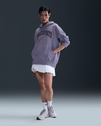 With unbrushed French terry and a vintage wash, this oversized sweatshirt has a breathable, broken-in feel. Product Details - Body/Hood lining: 88% cotton/12% polyester. Rib: 97% cotton/3% spandex. - Extra-wide ribbing - Elongated drawcords - Printed graphics with stitched outline - Embroidered Swoosh logo on left wrist - Embroidered drawcord opening - Machine wash - Imported - Shown: Dusty Amethyst - Style: HJ1235-527 SIZE & FIT Model is wearing size S and is 5′10″178cm Oversized fit: exaggerated and spacious