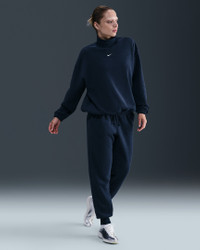 Made from textured fleece, this oversized top has a structured yet relaxed feel. Product Details - 73% polyester/27% rayon - Ribbed collar - Embroidered Swoosh logo - Machine wash - Imported - Shown: Midnight Navy/Sail - Style: HV2741-410 SIZE & FIT Model is wearing size S and is 5′10″178cm Oversized fit: exaggerated and spacious