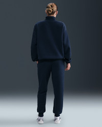 These pants are made with textured midweight fleece that helps keep you feeling extra cozy. A tapered leg adds some structure to your look. Product Details - Body: 73% polyester/27% rayon. Pocket bags: 100% cotton. - Elastic waistband with drawcord - Side slit pockets - Embroidered Swoosh logo on left hip - Machine wash - Imported - Shown: Midnight Navy/Sail - Style: HQ7644-410 SIZE & FIT Model is wearing size S and is 5′10″178cm Standard fit: easy and traditional Fl length: hits below ankle