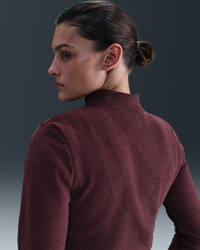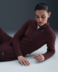 Structured and cozy? Yes, please. This top’s fabric feels plush on the outside and fuzzy on the inside, elevating fleece in a polished silhouette. Product Details - 73% polyester/27% rayon - Mock-neck collar - Embroidered Swoosh logo on left chest - 1/2-length zipper with thin metal zipper pull - Machine wash - Imported - Shown: Burgundy Crush/Sail - Style: FV8028-652 SIZE & FIT Model is wearing size S and is 5′9″175cm Sm fit: sleek and tailored