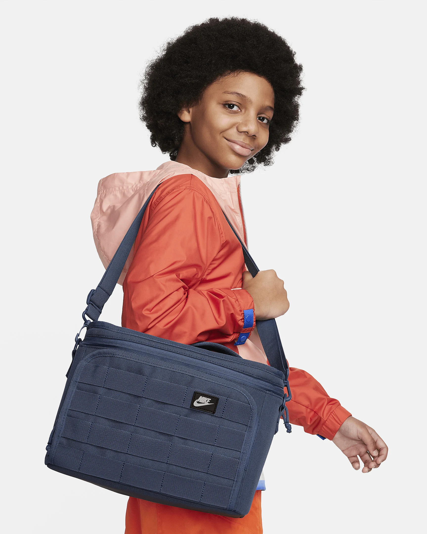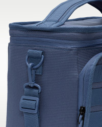 A larger version of the Nike Futura Sportswear Lunch Tote, this bag has enough space to hold a meal for 2 or more. It features a main zippered compartment with food grade PEVA insulation to help keep your food cool or warm. The zippered pocket on the front and the inner mesh pocket helps you keep your meal organized and the adjustable removable strap provides comfy wear. Product Details - 9"H x 12.5"L x 7.5"D; Strap length: 60" (longest) - Main Body: 100% Polyester; Lining: 100% Polyethylene Vinyl Acetate - Spot Clean - Imported - Shown: Diffused Blue - Style: 9A3019-U6B