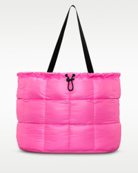 Carry your stuff in style. This bag features luxe materials and a puffer design. The large, main compartment has a cinch closure with Swoosh logo cord lock to secure your belongings. Zippered interior pockets help you stay organized. Product Details - 24"W x 12"H x 11"D - Body: 100% nylon. Lining: 100% polyester. - Spot clean - Imported - Shown: Pink Spell/Black/Black - Style: HQ0220-606