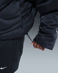 Bundle up in this next-level puffer. Engineered with maximum down insulation and water-repellent fabric, it’s our warmest option in the Swoosh Series Collection. We added fleece-lined cuffs and bungees at the hood and hem so you’re ready to cinch out the cold. Product Details - Body/Lining: 100% polyester. Fill: grey duck down (minimum 75% down)/(APA Version: 75% grey duck down/25% feathers). - Oversized fit - Side and internal pockets - Machine wash - Imported - Shown: Black/Black - Style: IB2005-010 SIZE & FIT Model is wearing size S and is 5′7″170cm Oversized fit: exaggerated and spacious