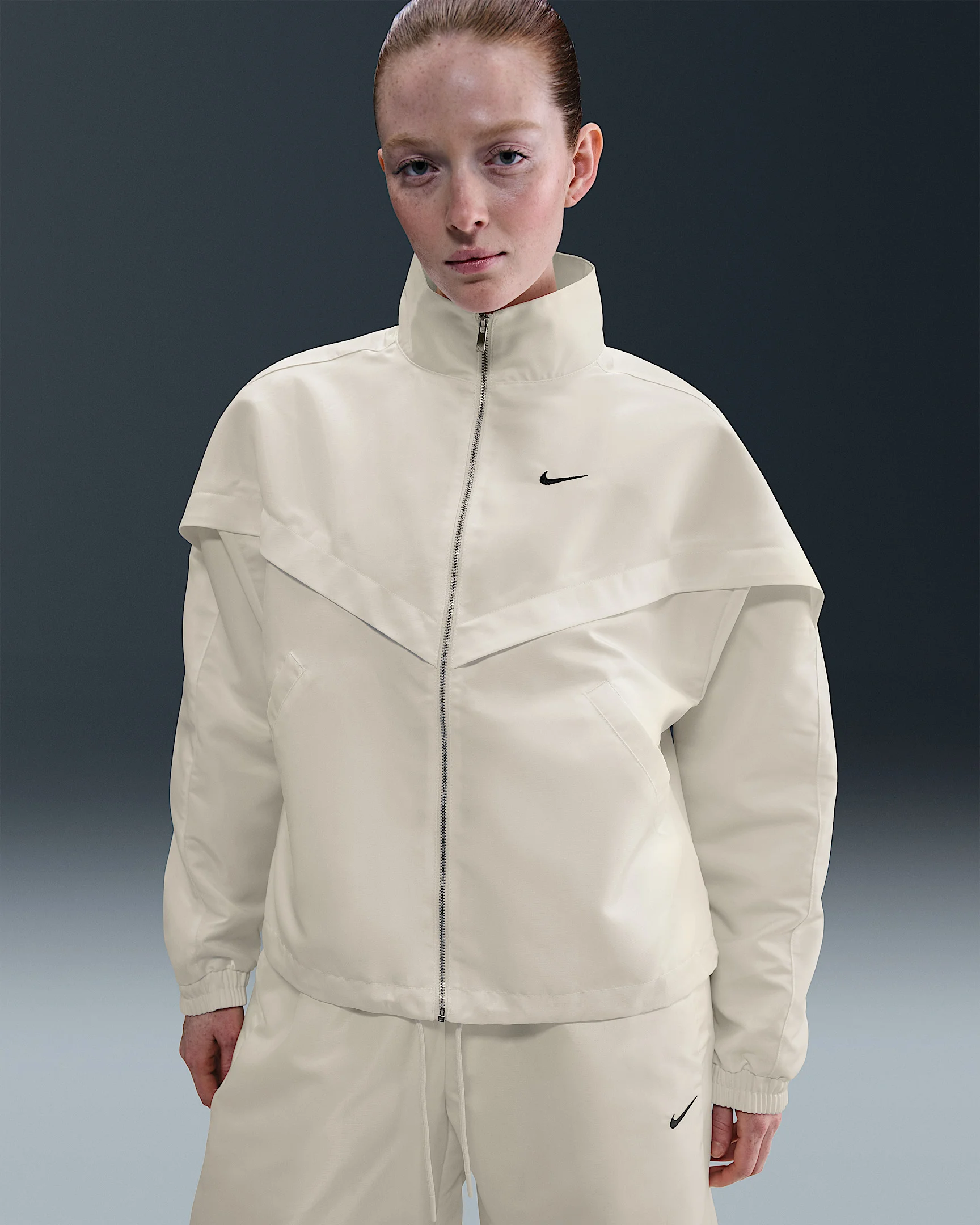 Updating the classic, we subbed the elastic hem for a drawcord to let you control the fit at the waist. We kept the water-repellent finish and the classic chevron lines that tie the look to the original Windrunner jackets. Benefits - Lightweight, water-repellent twill gives you both structure and function. - Chevron design lines connect this jacket to our iconic track jacket look. - Woven lining adds a touch of warmth and a smooth interior. Product Details - Body/Lining: 100% polyester - Embroidered Swoosh logo - Elastic at cuffs - Zippered pockets - Machine wash - Imported - Shown: Sail/Black - Style: HV2467-133 SIZE & FIT Model is wearing size S and is 5′7″170cm Loose fit: roomy and relaxed