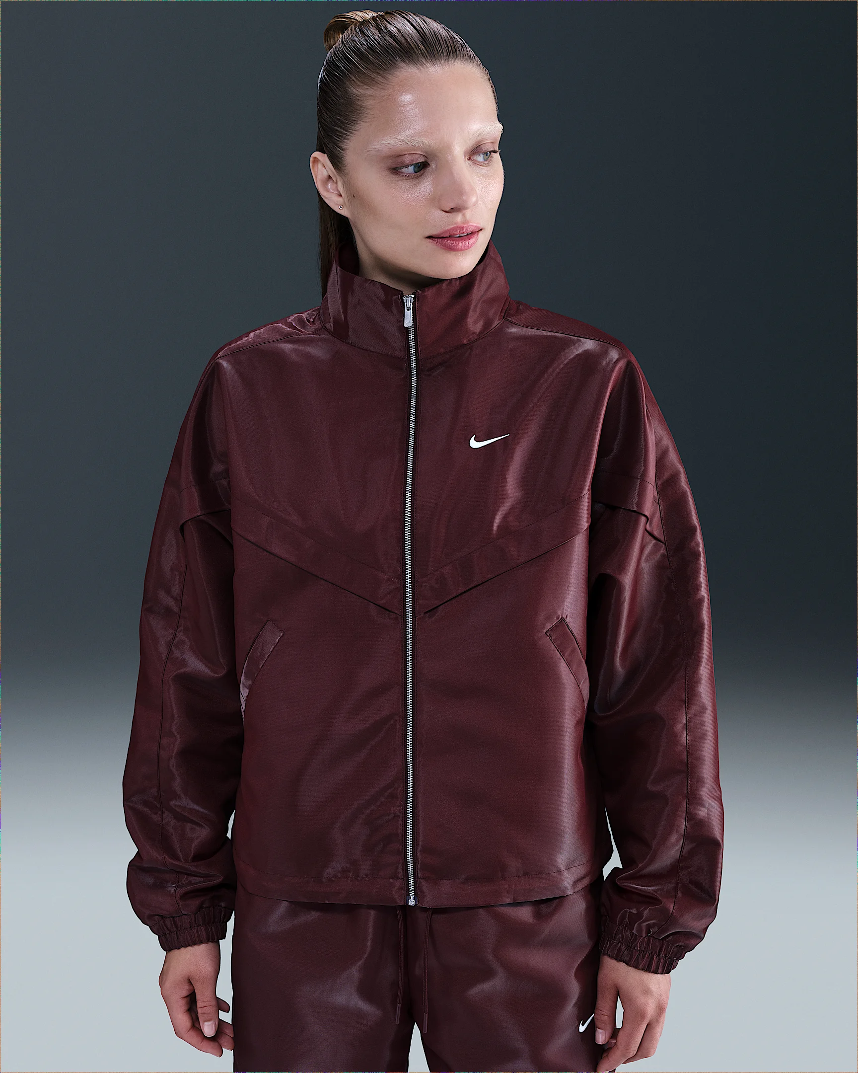 Updating the classic, we subbed the elastic hem for a drawcord to let you control the fit at the waist. We kept the water-repellent finish and the classic chevron lines that tie the look to the original Windrunner jackets. Benefits - Lightweight, water-repellent twill gives you both structure and function. - Chevron design lines connect this jacket to our iconic track jacket look. - Woven lining adds a touch of warmth and a smooth interior. Product Details - Body/Lining: 100% polyester - Embroidered Swoosh logo - Elastic at cuffs - Machine wash - Imported - Shown: Burgundy Crush/Sail - Style: HV2467-652 SIZE & FIT Model is wearing size S and is 5′10″178cm Loose fit: roomy and relaxed