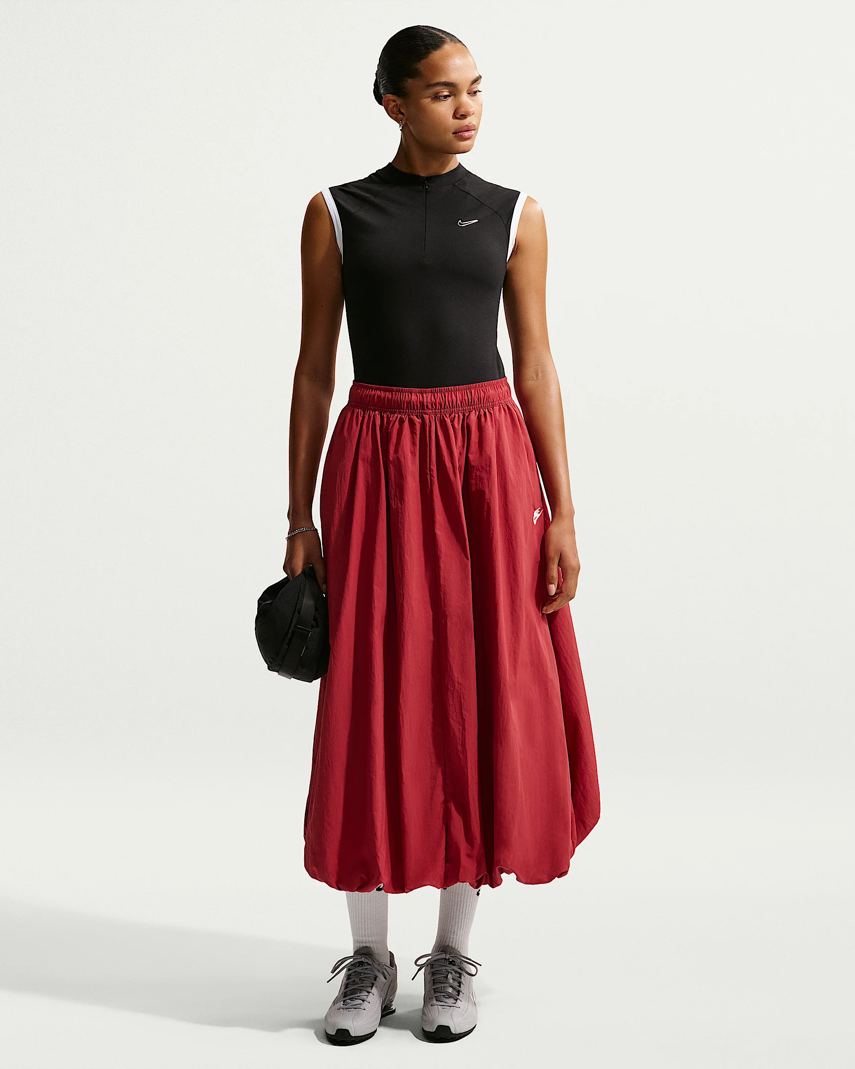 Add dimension with this bubble hem skirt. Lightweight taffeta has a water-repellent finish and a crisp feel. The elastic waistband with drawcord help keep the fit feeling right. Product Details - Body: 100% nylon. Lining: 100% polyester - Pockets - Elastic waistband with drawcord - High-waisted fit - Midi-length design - Embroidered Futura logo - Machine wash - Imported - Shown: Team Crimson/Chalk - Style: IM7450-613 SIZE & FIT Loose fit: roomy and relaxed