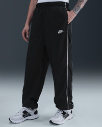 A classic silhouette, these high-waisted track pants are roomy through the legs for a loose fit. Lightweight and water-repellent taffeta has a crisp and smooth feel. Product Details - Body: 100% nylon. Lining: 100% polyester - Pockets - Elastic waistband with drawcord - Elastic at cuffs - Embroidered Swoosh logo - Machine wash - Imported - Shown: Black/Sail/Sail - Style: IM8031-010 SIZE & FIT Model is wearing size S and is 5′9″175cm Loose fit: roomy and relaxed Fl length: hits below ankle