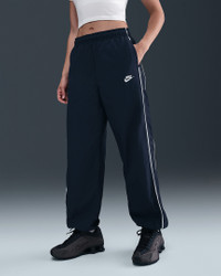 A classic silhouette, these high-waisted track pants are roomy through the legs for a loose fit. Lightweight and water-repellent taffeta has a crisp and smooth feel. Product Details - Body: 100% nylon. Lining: 100% polyester - Pockets - Elastic waistband with drawcord - Elastic at cuffs - Embroidered Swoosh logo - Machine wash - Imported - Shown: Midnight Navy/Sail/Sail - Style: IM8031-410 SIZE & FIT Model is wearing size S and is 5′10″178cm Loose fit: roomy and relaxed Fl length: hits below ankle