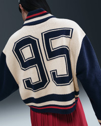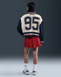A sport-inspired classic, this cardigan pairs a varsity look with a cozy feel. Chunky knit gives you volume and drape while feeling soft and comfortable against your skin. Benefits - 2-way zipper gives you extra versatility when styling. - Dropped shoulders and extra room through the body give you an oversized fit. Product Details - 98% acrylic/1% spandex/1% polyester - Striped ribbing at neck, hem and cuffs - Oversized fit - Embroidered Swoosh logo - Hand wash - Imported - Shown: Light Orewood Brown/Midnight Navy/University Red/Sail - Style: HV2494-104 SIZE & FIT Model is wearing size S and is 5′7″170cm Oversized fit: exaggerated and spacious