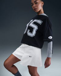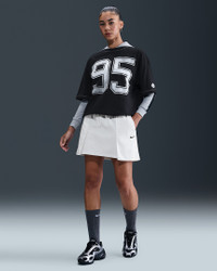 Crafted with cotton canvas, this skirt has a structured feel. Exterior pocket bags add layers and dimension to your look. Product Details - Body: 100% cotton. Waistband: 79% polyester/11% spandex/10% nylon. - Elastic waistband with drawcord - Double welt pocket on back - Embroidered Swoosh logo on left cargo pocket - Machine wash - Imported - Shown: Summit White/Black - Style: IB2034-121 SIZE & FIT Model is wearing size S and is 5′9″175cm Standard fit: easy and traditional
