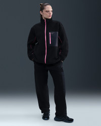 Cozy up in this oversized jacket. Lofted fleece helps manage your body's natural heat to help keep you warm in cold conditions—and it feels super soft. Product Details - 100% polyester - Side-seam Pockets - Piping on sleeves - Zippered chest pocket - Elastic at hem and cuffs - Zippered closure - Machine wash - Imported - Shown: Black/Black/Playful Pink/Playful Pink - Style: IM7484-010 SIZE & FIT Model is wearing size S and is 5′10″178cm Oversized fit: exaggerated and spacious