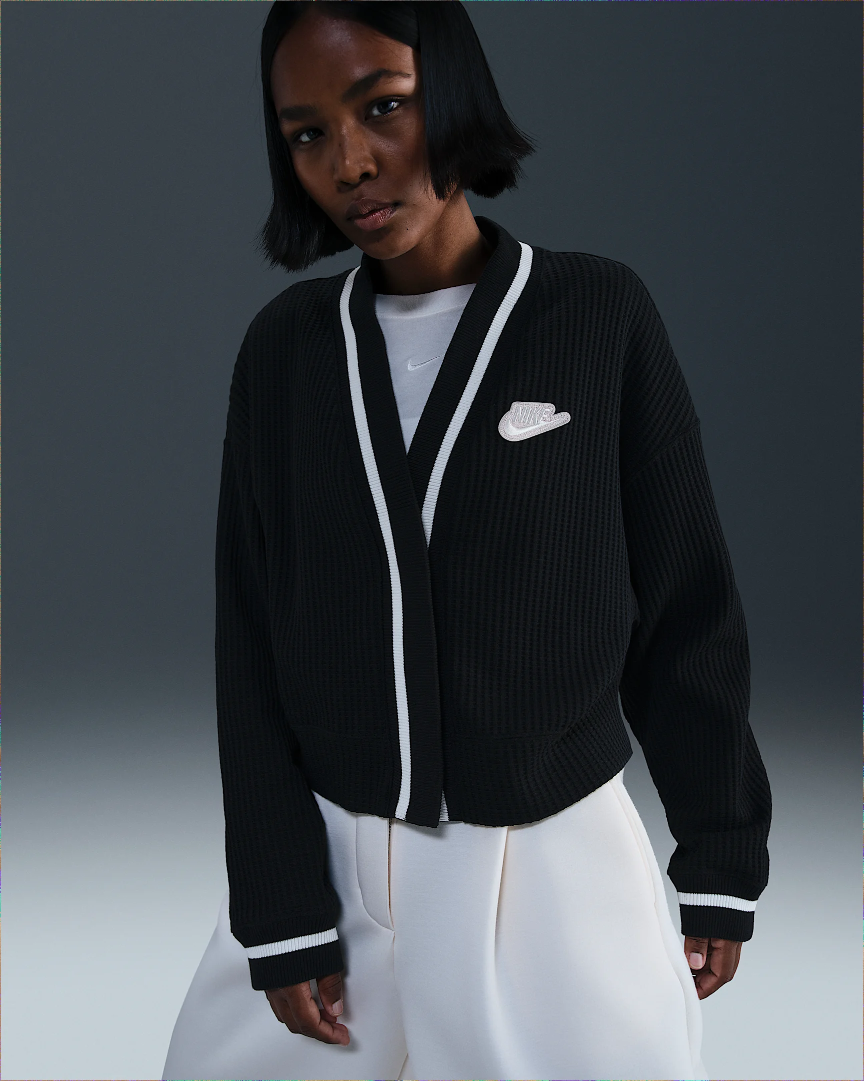 Stripped ribbing nods to heritage sport and waffle knit fabric adds texture to this loose vest. Product Details - Body: 60% cotton/40% polyester. Panels: 65% polyester/34% cotton/1% spandex. Lining: 100% cotton - Ribbed detailing - Front snap closure - Futura logo badge - Machine wash - Imported - Shown: Black - Style: IM7467-010 SIZE & FIT Model is wearing size S and is 5′7″170cm Loose fit: roomy and relaxed