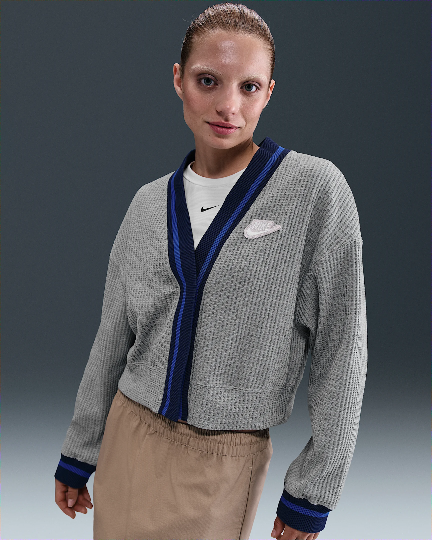 Stripped ribbing nods to heritage sport and waffle knit fabric adds texture to this loose vest. Product Details - Body: 60% cotton/40% polyester. Panels: 65% polyester/34% cotton/1% spandex. Lining: 100% cotton - Ribbed detailing - Front snap closure - Futura logo badge - Machine wash - Imported - Shown: Dark Grey Heather/Heather - Style: IM7467-063 SIZE & FIT Model is wearing size S and is 5′10″178cm Loose fit: roomy and relaxed