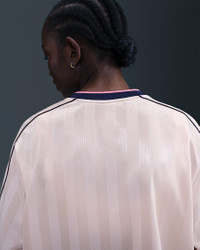 A sports jersey for your every day. This midweight jacquard top alternates matte and shine finishes for subtle dimension and an elevated drape. Benefits - Lightweight fabric moves sweat away from your skin for quick evaporation, helping you stay dry and comfortable. - Dropped shoulders and extra room through the body give you a loose fit. Product Details - 100% polyester - Ribbed cuffs and collar - Loose fit - Piping from collar to cuff - Machine wash - Imported - Shown: Silt Red/Midnight Navy - Style: IM7452-667 SIZE & FIT Model is wearing size S and is 5′8″173cm Loose fit: roomy and relaxed