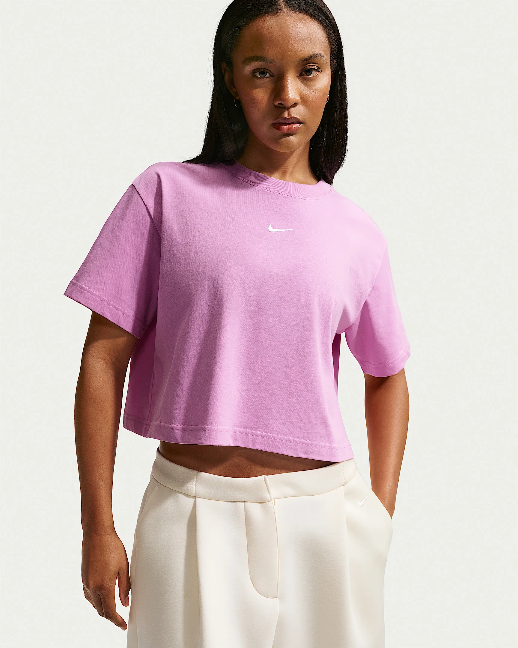 Keep it classic. This boxy, cropped tee is made with midweight, washed cotton that's soft and slightly structured. Product Details - Embroidered logo - Ribbed collar - 100% cotton - Machine wash - Imported - Shown: Light Magenta - Style: IH7594-503 SIZE & FIT Model is wearing size S and is 5′7″170cm Loose fit: roomy and relaxed