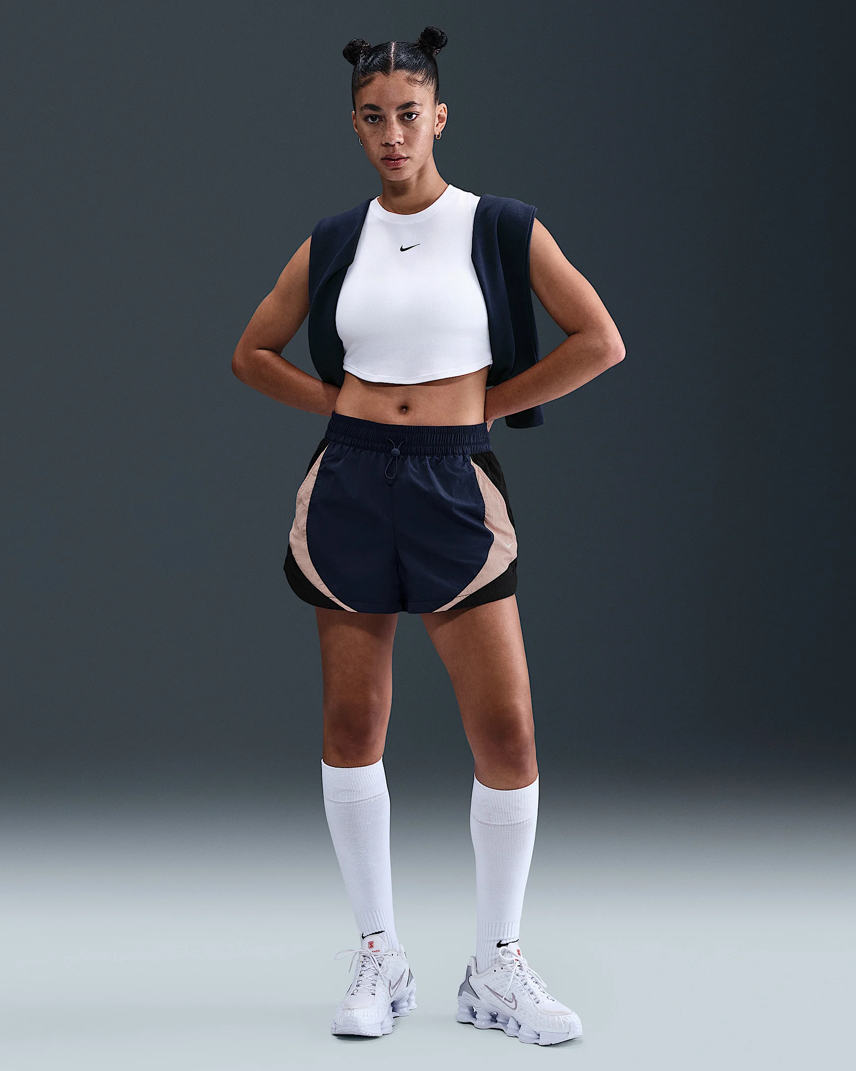 Made with lightweight taffeta, these roomy shorts have a crisp texture and a look rooted in vintage track. Benefits - Mesh lining moves sweat away from your skin for quick evaporation, helping you stay dry and comfortable. - Cord lock at waistband lets you dial in your perfect fit. Product Details - Body: 100% nylon. Pocket bags/lining: 100% polyester. - This product provides UVA and UVB protection from the sun only in the areas covered by the garment. To protect exposed areas, the use of good quality sunscreen is recommended. - Elastic waistband with cord lock - Pockets - Embroidered Swoosh logo on left thigh - Machine wash - Imported - Shown: Midnight Navy/Black/Particle Pink/Sail - Style: HV4031-410 SIZE & FIT Model is wearing size S and is 5′9″175cm Loose fit: roomy and relaxed
