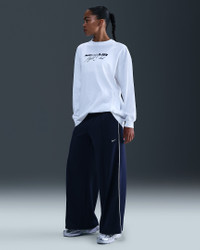 We're reimagining classic track pants. Midweight knit and super wide legs combine to bring effortless drape to your look. Product Details - 100% polyester - Interior drawstring at waist - Embroidered Swoosh logo - Pockets - Machine wash - Imported - Shown: Midnight Navy/Sail/Sail - Style: IH8514-410 SIZE & FIT Model is wearing size S and is 5′11″179cm Standard fit: easy and traditional Fl length: hits below ankle
