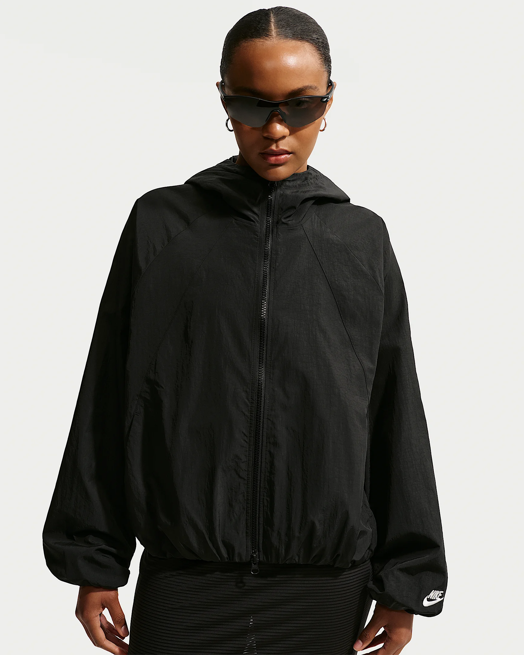 This lightweight taffeta jacket is equipped with water repellency to help provide coverage from light wind and rain. Its extra roomy fit is designed to hit at your hips for a boxy look. A two-way zipper lets you switch up your style and coverage Product Details - Embroidered logo - Hand pockets - Elastic cuffs and waistband - Body: 100% nylon. Lining: 100% polyester. - Machine wash - Imported - Shown: Black/Chalk - Style: IQ0056-010 SIZE & FIT Oversized fit: exaggerated and spacious