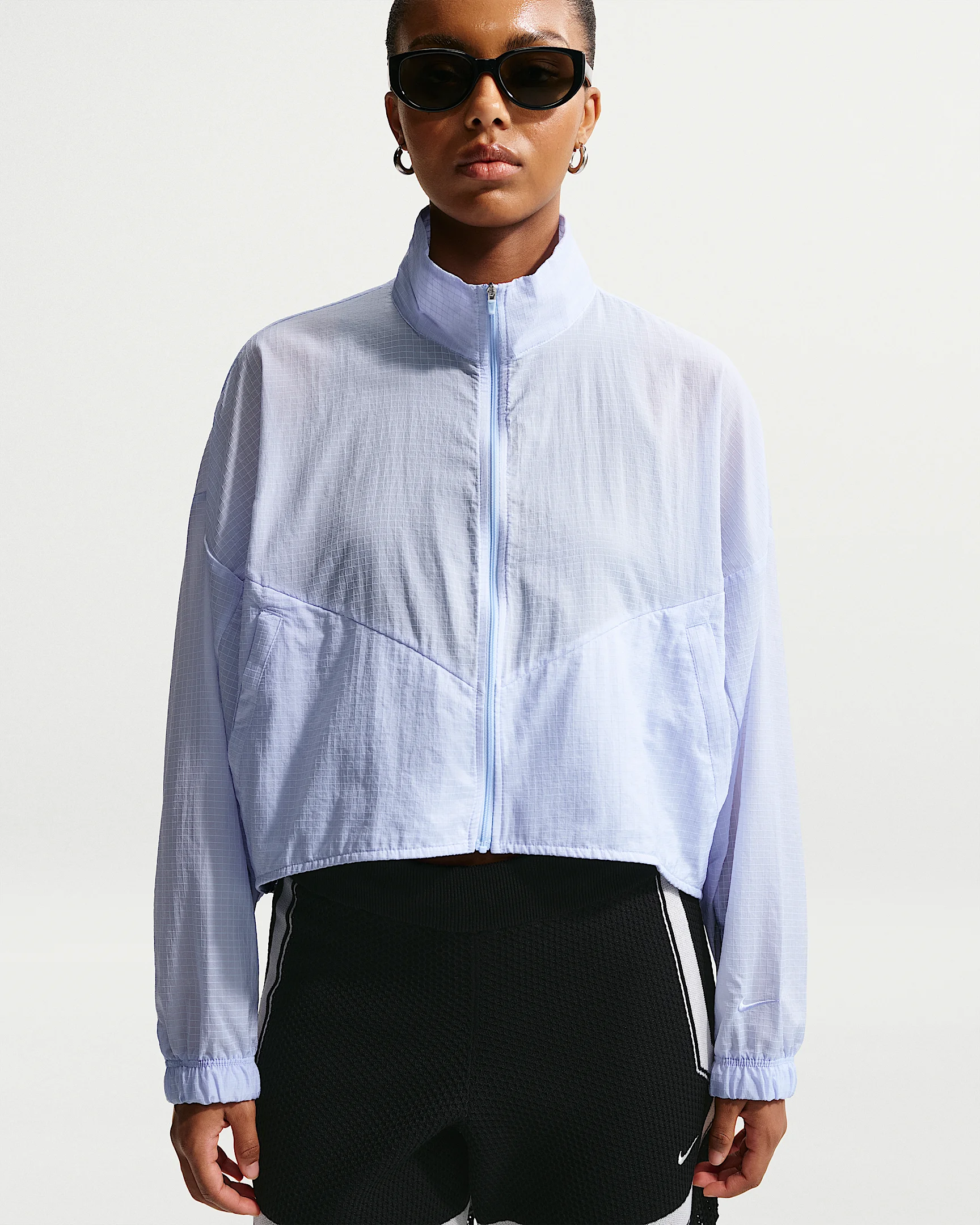 Wherever your day takes you, this crisp ripstop jacket won't weigh you down. Its Windrunner design lines are paired with a flowy fit for a fresh take on Nike Heritage. Benefits - Water-repellency helps keep you dry in light rain. - Chevron design lines are inspired by the Windrunner track jacket from 1978, which is defined by its single and deceptively simple design cue. Product Details - Embroidered Swoosh logo - Front-zip closure - Hand pockets - 100% nylon - Machine wash - Imported - Shown: Hydrogen Blue/Hydrogen Blue - Style: IF0587-407 SIZE & FIT Model is wearing size S and is 5′9″175cm Oversized fit: exaggerated and spacious