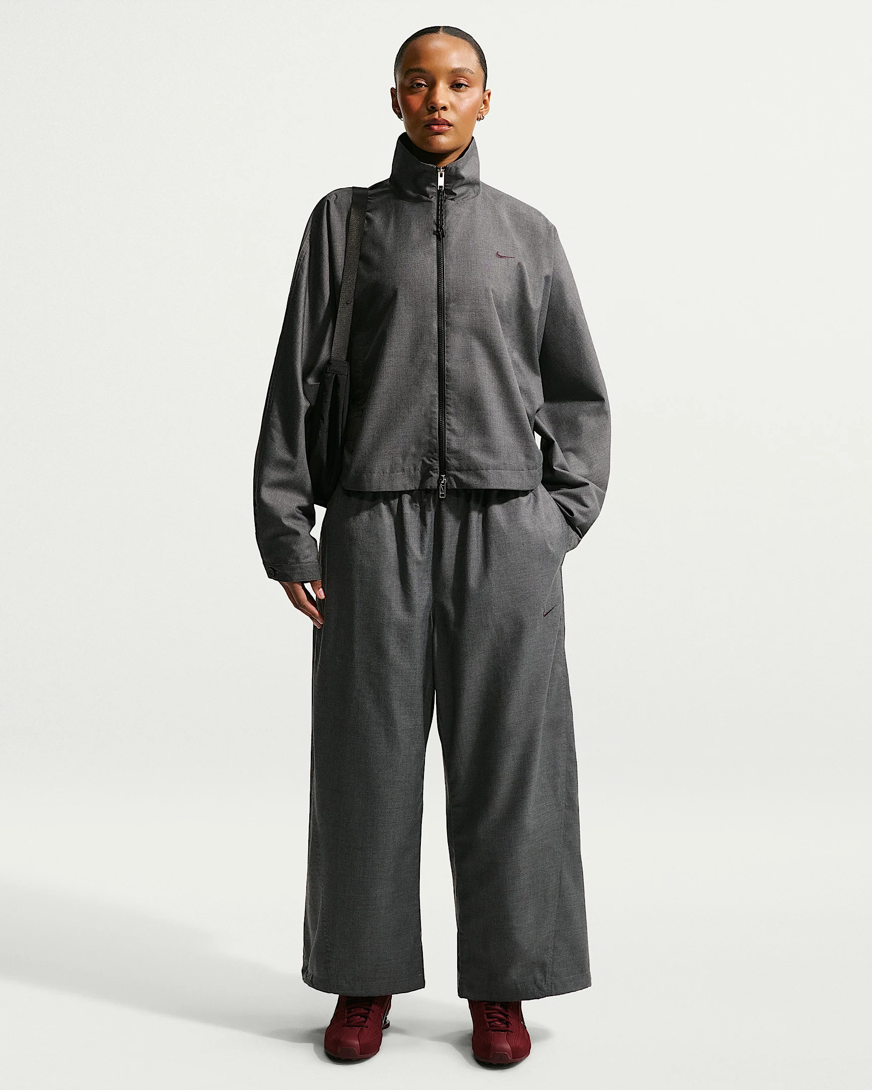 Classic style with a modern twist. These twill pants have a voluminous fit and slightly cropped length designed to hit at your ankles. Bungees at the cuffs let you switch up your style. Product Details - Embroidered logo - Encased elastic waistband - Back pocket with button closure - Mesh lining - Body: 65% polyester/35% rayon. Upper lining: 100% polyester. Lower lining: 65% polyester/35% rayon. - Machine wash - Imported - Shown: Black/Heather/Black - Style: IF5453-010 SIZE & FIT Model is wearing size S and is 5′7″170cm Oversized fit: exaggerated and spacious 78 length: hits at ankle