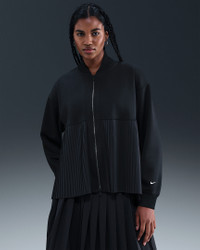 Defined by drape and flow. This midweight jacket has an oversized fit and pleats to give this sport-inspired style a fresh feel. Product Details - Body: 80% polyester/20% spandex. Panels: 100% polyester - 2-way zipper - Ribbed cuffs and collar - Embroidered Swoosh logo - Machine wash - Imported - Shown: Black/Sail - Style: IM7457-010 SIZE & FIT Oversized fit: exaggerated and spacious
