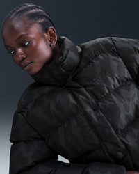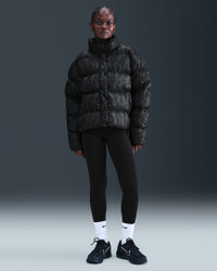 Bundle up in this roomy, hip-length puffer. With a loose collar and Therma-FIT technology, this jacket is designed to keep you cozy even on the coldest days. And to help shield you from the rain, we made this jacket from water-repellent ripstop fabric and added a hood that you can pack away with ease when you don't need it. More Benefits - Style: Warm, hip-length jacket with loose fit - Materials: Water-repellent ripstop - Construction: Lightweight synthetic insulation inside baffles - Storage: Zippered hand pockets and interior pocket with snap - Trim: Zipper closure with storm flap - Perks: Stowaway hood with snap closure Product Details - 100% polyester - Embroidered Swoosh logo - Encased elastic cuffs and hem - Machine wash - Imported - Shown: Black/Black - Style: HV5101-010 SIZE & FIT Model is wearing size S and is 5′8″173cm Loose fit: roomy and relaxed