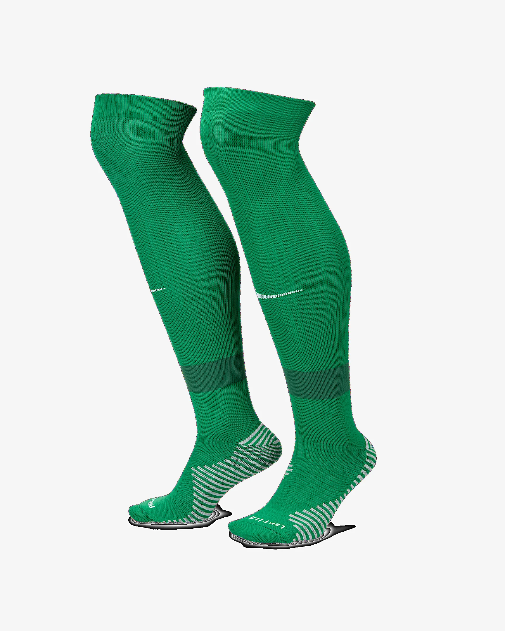 These Nike Strike socks have a knee-high length to help keep you comfortable wherever your day takes you. Product Details - 88% polyester/6% cotton/6% spandex - Machine wash - Imported - Shown: Pine Green/Gorge Green/Black/White - Style: FQ8253-302