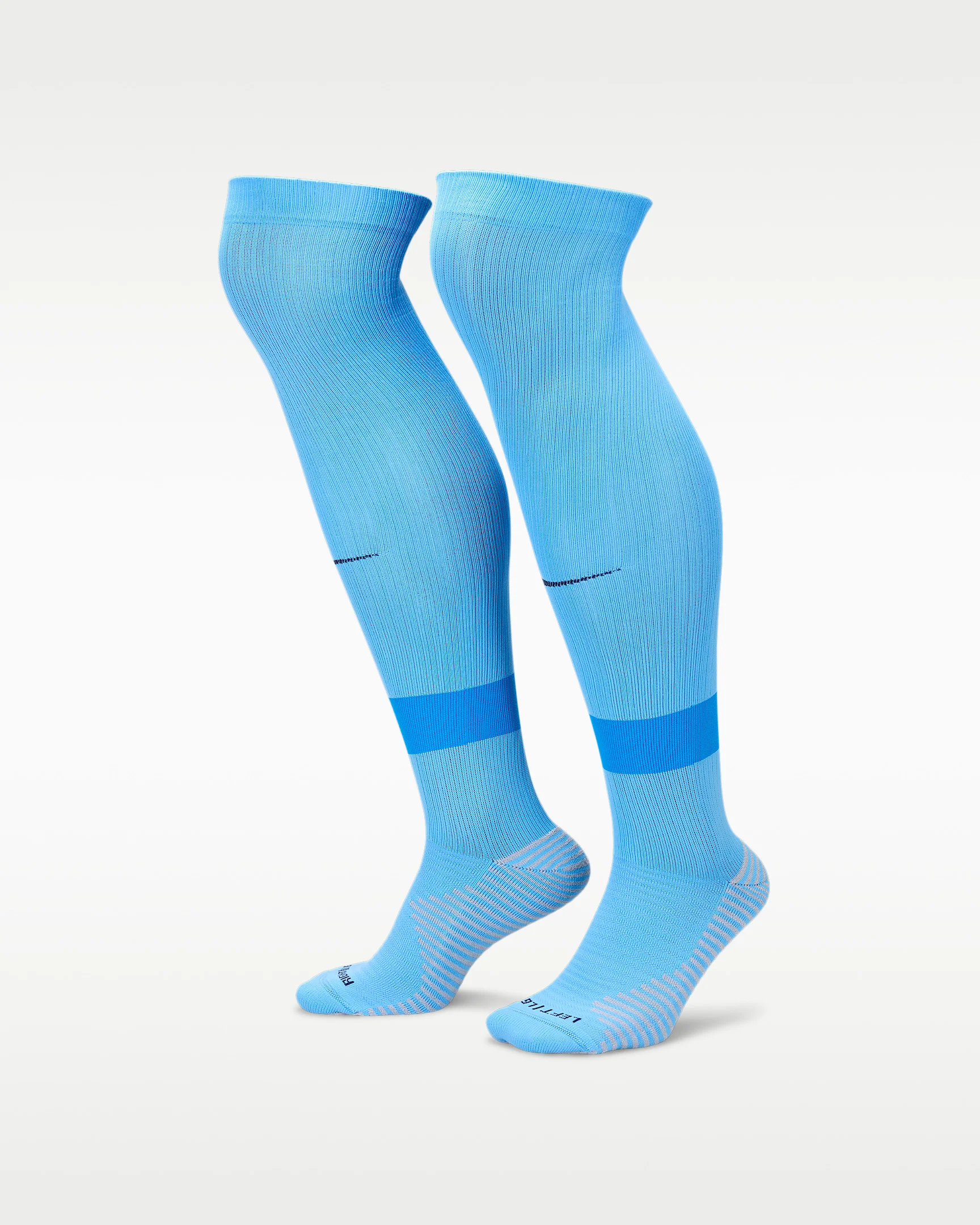 These Nike Strike socks have a knee-high length to help keep you comfortable wherever your day takes you. Product Details - 88% polyester/6% cotton/6% spandex - Machine wash - Imported - Shown: University Blue/Italy Blue/Midnight Navy - Style: FQ8253-412