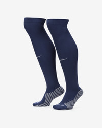 These Nike Strike socks have a knee-high length to help keep you comfortable wherever your day takes you. Product Details - 88% polyester/6% cotton/6% spandex - Machine wash - Imported - Shown: Midnight Navy/White - Style: FQ8253-410