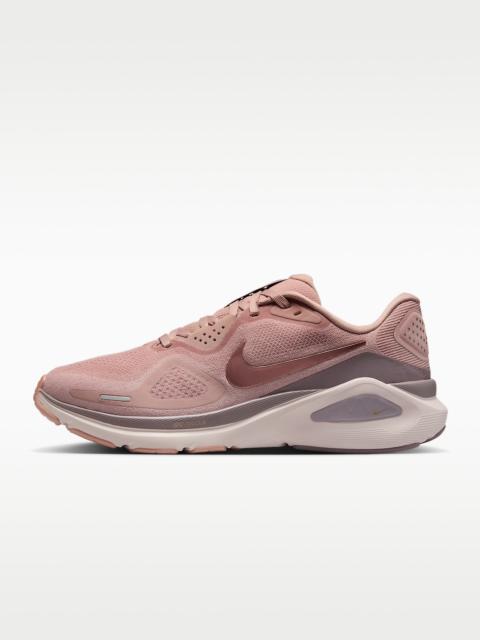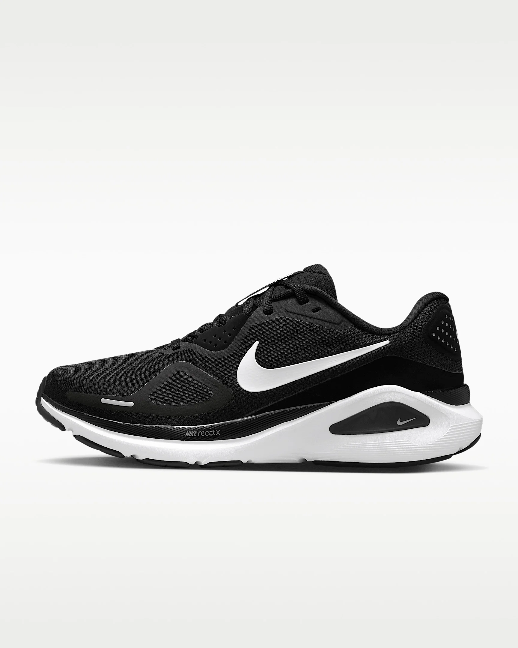 Supportive cushioning in the Structure 26 provides steadiness for everyday runs. A full-length ReactX midsole delivers a cushioned, yet stable transition from heel to toe off. Plus, a tried-and-true midfoot support system wraps around your arch and heel to provide a firm platform. More Benefits - ReactX foam underfoot and higher stack height for stability and support - Lighter, more flexible rubber in forefoot of outsole for cushioning - High-abrasion rubber in heel for increased durability Product Details - Weight: Approx. 262g/9.2oz (Women’s US 8) - Heel-to-toe drop: 10mm - Reflective details - Not intended for use as Personal Protective Equipment (PPE) - Shown: Black/Cool Grey/Metallic Silver/White - Style: HJ1101-003