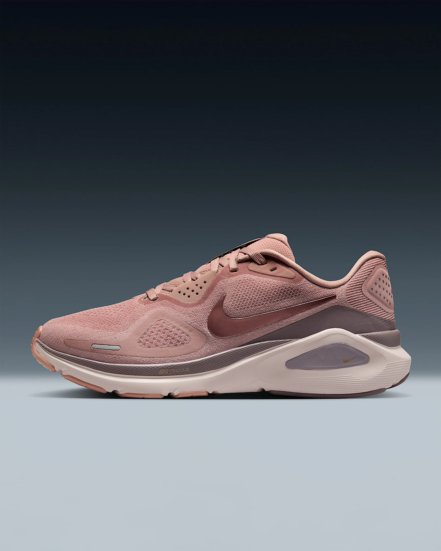 Supportive cushioning in the Structure 26 provides steadiness for everyday runs. A full-length ReactX midsole delivers a cushioned, yet stable transition from heel to toe off. Plus, a tried-and-true midfoot support system wraps around your arch and heel to provide a firm platform. More Benefits - ReactX foam underfoot and higher stack height for stability and support - Lighter, more flexible rubber in forefoot of outsole for cushioning - High-abrasion rubber in heel for increased durability Product Details - Weight: Approx. 262g/9.2oz (Women’s US 8) - Heel-to-toe drop: 10mm - Reflective details - Not intended for use as Personal Protective Equipment (PPE) - Shown: Particle Pink/Taupe Grey/Silt Red/Metallic Rose Gold - Style: HJ1101-600
