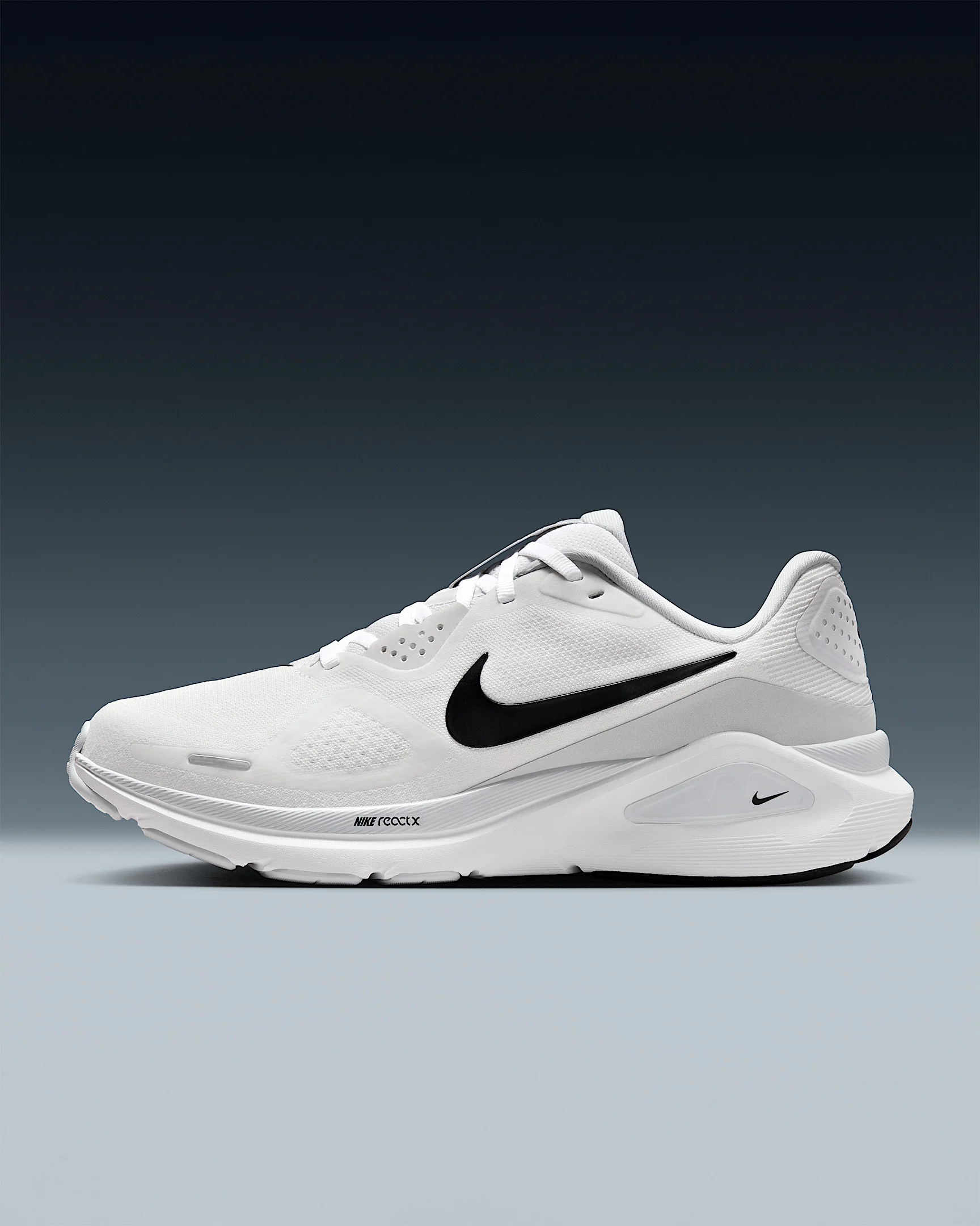 Supportive cushioning in the Structure 26 provides steadiness for everyday runs. A full-length ReactX midsole delivers a cushioned, yet stable transition from heel to toe off. Plus, a tried-and-true midfoot support system wraps around your arch and heel to provide a firm platform. More Benefits - ReactX foam underfoot and higher stack height for stability and support - Lighter, more flexible rubber in forefoot of outsole for cushioning - High-abrasion rubber in heel for increased durability Product Details - Weight: Approx. 262g/9.2oz (Women’s US 8) - Heel-to-toe drop: 10mm - Reflective details - Not intended for use as Personal Protective Equipment (PPE) - Shown: White/Pure Platinum/Black - Style: HJ1101-101
