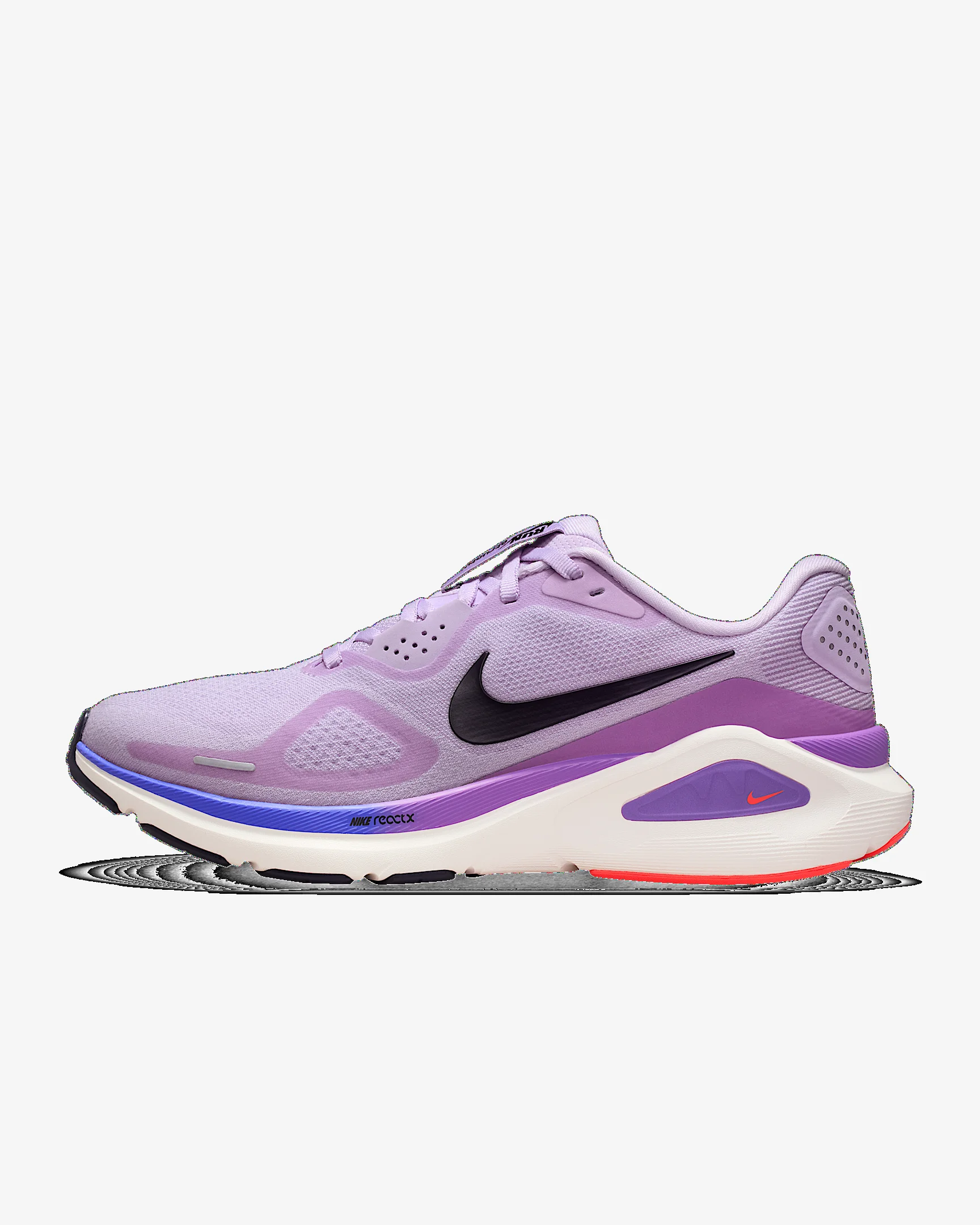 Supportive cushioning in the Structure 26 provides steadiness for everyday runs. A full-length ReactX midsole delivers a cushioned, yet stable transition from heel to toe off. Plus, a tried-and-true midfoot support system wraps around your arch and heel to provide a firm platform. More Benefits - ReactX foam underfoot and higher stack height for stability and support - Lighter, more flexible rubber in forefoot of outsole for cushioning - High-abrasion rubber in heel for increased durability Product Details - Weight: Approx. 262g/9.2oz (Women’s US 8) - Heel-to-toe drop: 10mm - Reflective details - Not intended for use as Personal Protective Equipment (PPE) - Shown: Violet Mist/Bright Violet/Sapphire/Cave Purple - Style: HJ1101-500 SIZE & FIT Fits small; we recommend ordering a half size up