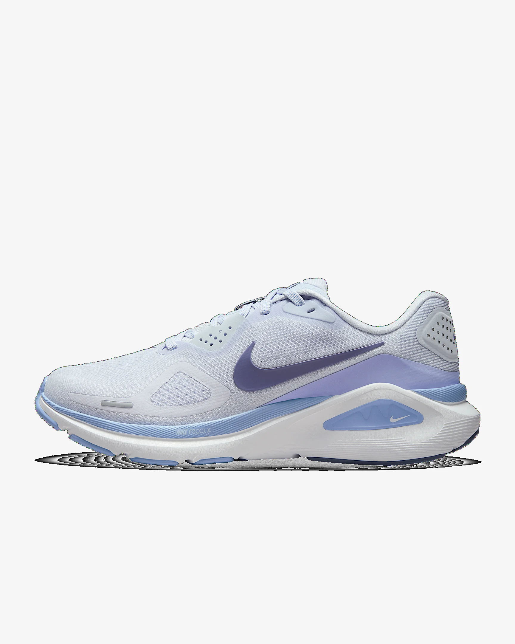 Supportive cushioning in the Structure 26 provides steadiness for everyday runs. A full-length ReactX midsole delivers a cushioned, yet stable transition from heel to toe off. Plus, a tried-and-true midfoot support system wraps around your arch and heel to provide a firm platform. More Benefits - ReactX foam underfoot and higher stack height for stability and support - Lighter, more flexible rubber in forefoot of outsole for cushioning - High-abrasion rubber in heel for increased durability Product Details - Weight: Approx. 262g/9.2oz (Women’s US 8) - Heel-to-toe drop: 10mm - Reflective details - Not intended for use as Personal Protective Equipment (PPE) - Shown: Football Grey/Aluminum/White/World Indigo - Style: HJ1101-004 SIZE & FIT Fits small; we recommend ordering a half size up