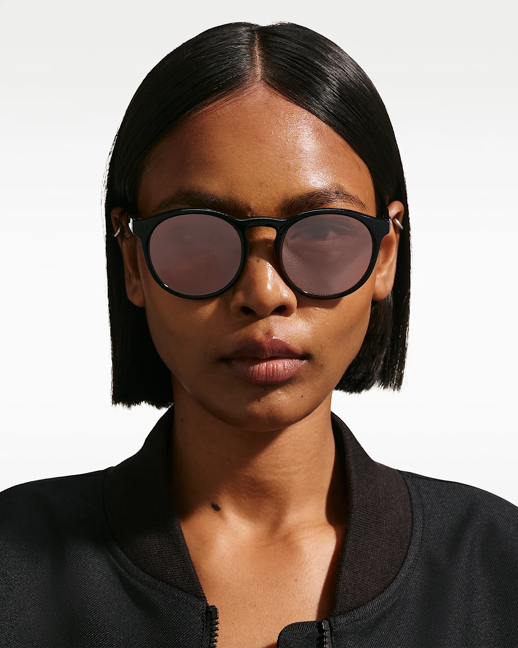 Balancing style and comfort, the Nike Swerve Sunglasses are your go-to pair for anywhere. Benefits - Frame size: 51mm lens width; 20mm bridge width; 140mm temple length - Nike Road Tint cuts harsh glare and highlights subtle changes in pavement. - Nike Max Optics Pro reduces light reflection and provides precisie vision with hydro-oleophobic coatings to repel water and oil for a clearer view of what’s ahead. - 4-base flat lens and slim profile provide everyday coverage. Product Details - Injected frame material is derived from at least 40% castor bean oil. - 100% UVA/UVB protection. - Shown: Black/Chrome - Style: NKIQ7186-011