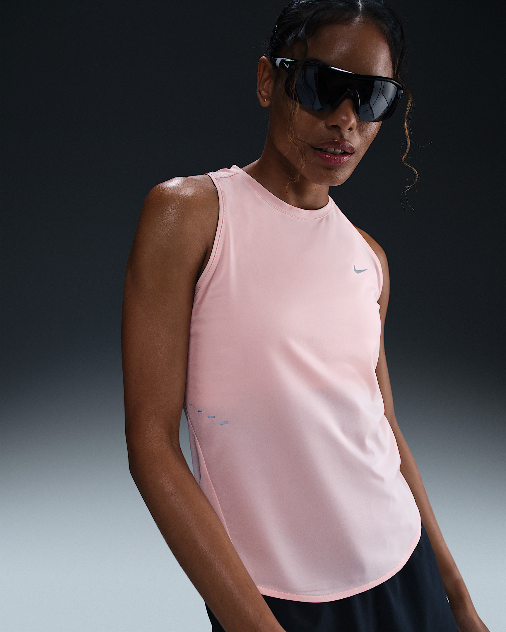 Using insights from runners like you, we prioritized functionality to refresh our Swift essentials. This lightweight tank has been designed to help improve breathability. It's soft and sweat-wicking so you can focus on your miles, and nothing else. Product Details - Reflective Swoosh logo on left chest - Reflective graphics on sides and back - Not intended for use as Personal Protective Equipment (PPE) - Body: 88% polyester/12% spandex. Mesh: 100% polyester. - Machine wash - Imported - Shown: Atmosphere - Style: HQ0620-607 SIZE & FIT Model is wearing size S and is 5′10″178cm Sm fit: sleek and tailored