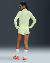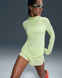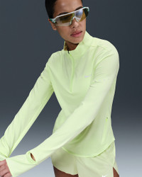 Using insights from runners like you, we prioritized functionality to refresh our Swift essentials. This lightweight mid layer has been designed to help reduce chafing. It's soft, sweat-wicking and helps block out UV rays so you can focus on your miles, and nothing else. Product Details - Reflective Swoosh logo on left chest - Reflective graphics on sleeves and back - Not intended for use as Personal Protective Equipment (PPE) - 1/4-length zipper with zipper guard - This product provides UVA and UVB protection from the sun only in the areas covered by the garment. To protect exposed areas, the use of good quality sunscreen is recommended. - Body: 88% polyester/12% spandex - Machine wash - Imported - Shown: Barely Volt/Heather - Style: HQ0499-701 SIZE & FIT Model is wearing size S and is 5′9″175cm Standard fit: easy and traditional