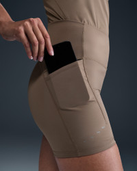 Using insights from runners like you, we prioritized functionality to refresh our Swift essentials. These midweight, sweat-wicking biker shorts are seamless on the inner legs to help reduce chafing. Three pockets store your essentials so you can rack up your miles with everything you need close by. Product Details - Reflective Swoosh logo on center back - Reflective graphics on outer thighs - Not intended for use as Personal Protective Equipment (PPE) - Internal drawcord - Body/Panels lining: 75% polyester/25% spandex - Machine wash - Imported - Shown: Mink Brown - Style: HJ2258-233 SIZE & FIT Model is wearing size S and is 5′9″175cm Tight fit: snug and form-fitting Medium support: feels ke a snug hold to keep everything in place High-Waisted: sits at or above your natural waist for more coverage