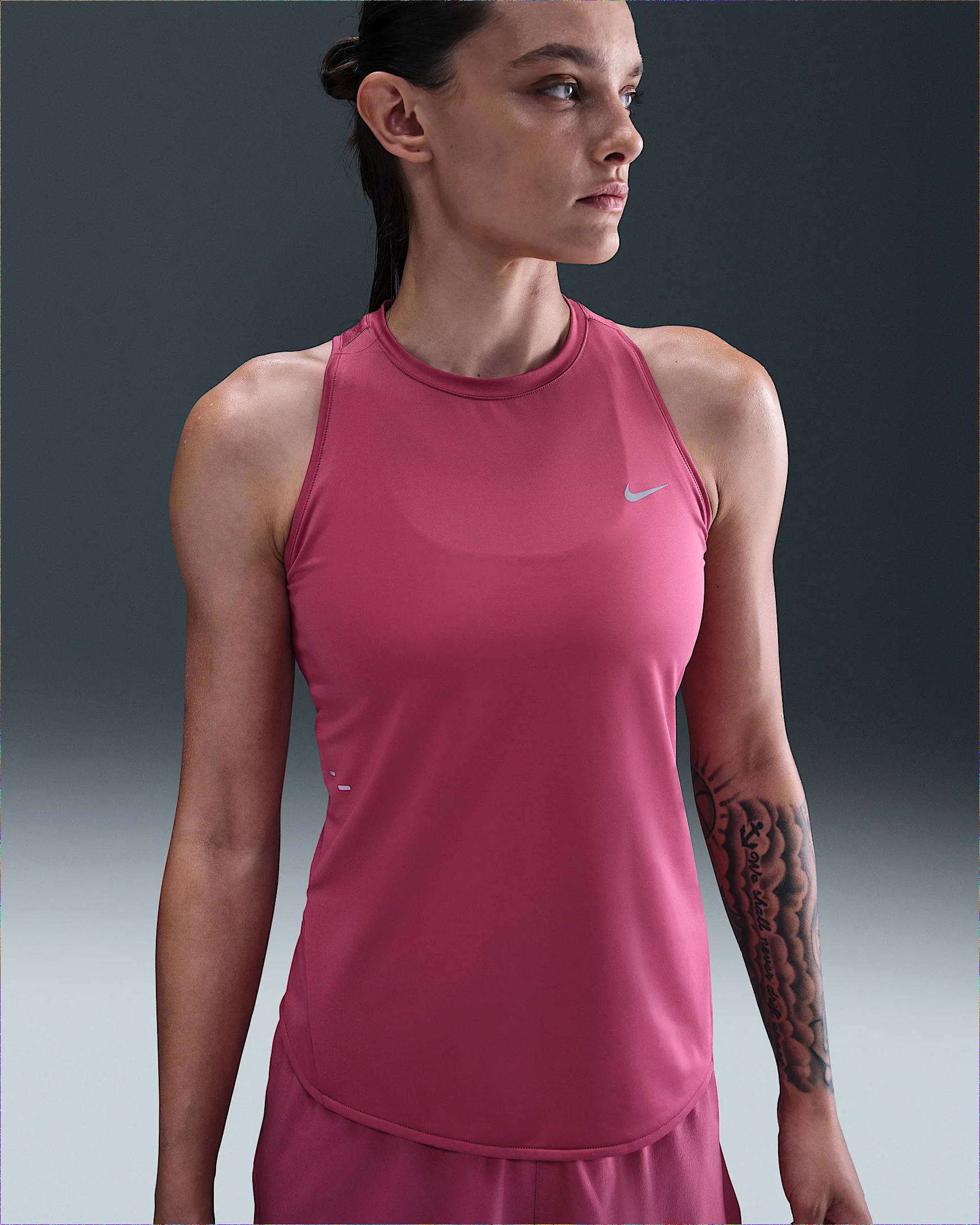 Using insights from runners like you, we prioritized functionality to refresh our Swift essentials. This lightweight tank has been designed to help improve breathability. It's soft and sweat-wicking so you can focus on your miles, and nothing else. Product Details - Reflective Swoosh logo on left chest - Reflective graphics on sides and back - Not intended for use as Personal Protective Equipment (PPE) - Body: 88% polyester/12% spandex. Mesh: 100% polyester. - Machine wash - Imported - Shown: Sweet Beet - Style: HQ0620-634 SIZE & FIT Model is wearing size S and is 5′9″175cm Sm fit: sleek and tailored